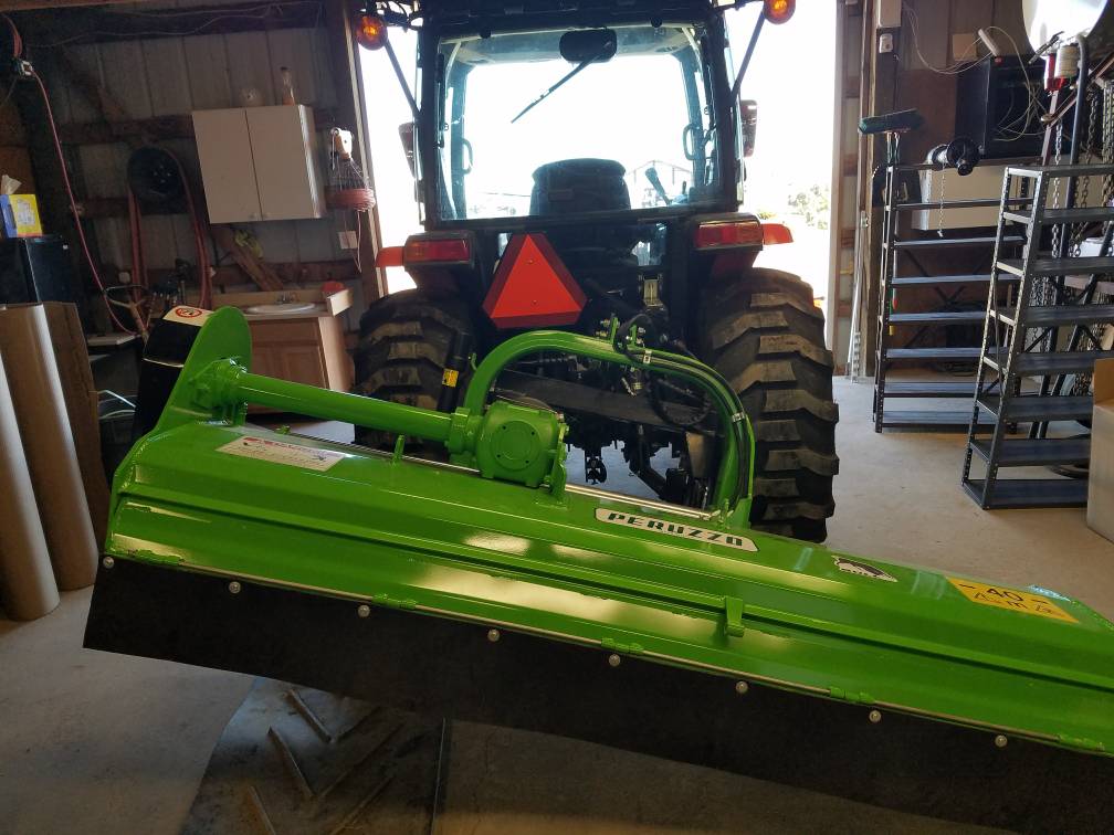 The shredder will work which surprised me as both it and finish mower are BushHog brand. I still have to get bushings for it and the other implements but here is a picture with it raised.