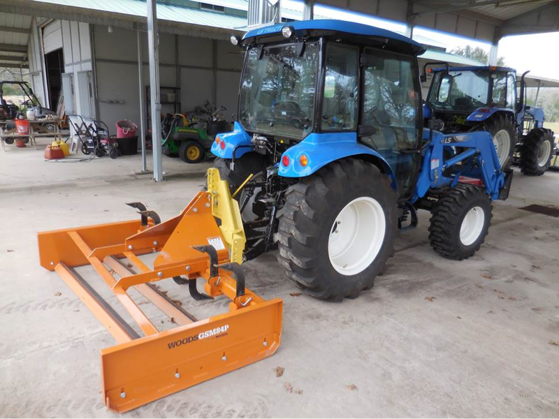 I chose to add higher end implements to go with my LS XR4046HC with included FEL (standard). Added a Woods GSM84P rear grader w/ scarifiers and a Woods BB72X rotary cutter.