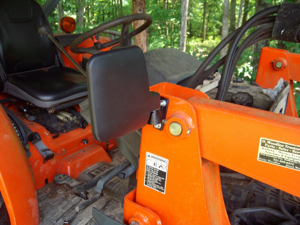 I bought a couple of cheap golf cart mirrors a while back and finally got around to installing them on the "towers" of my FEL mount.