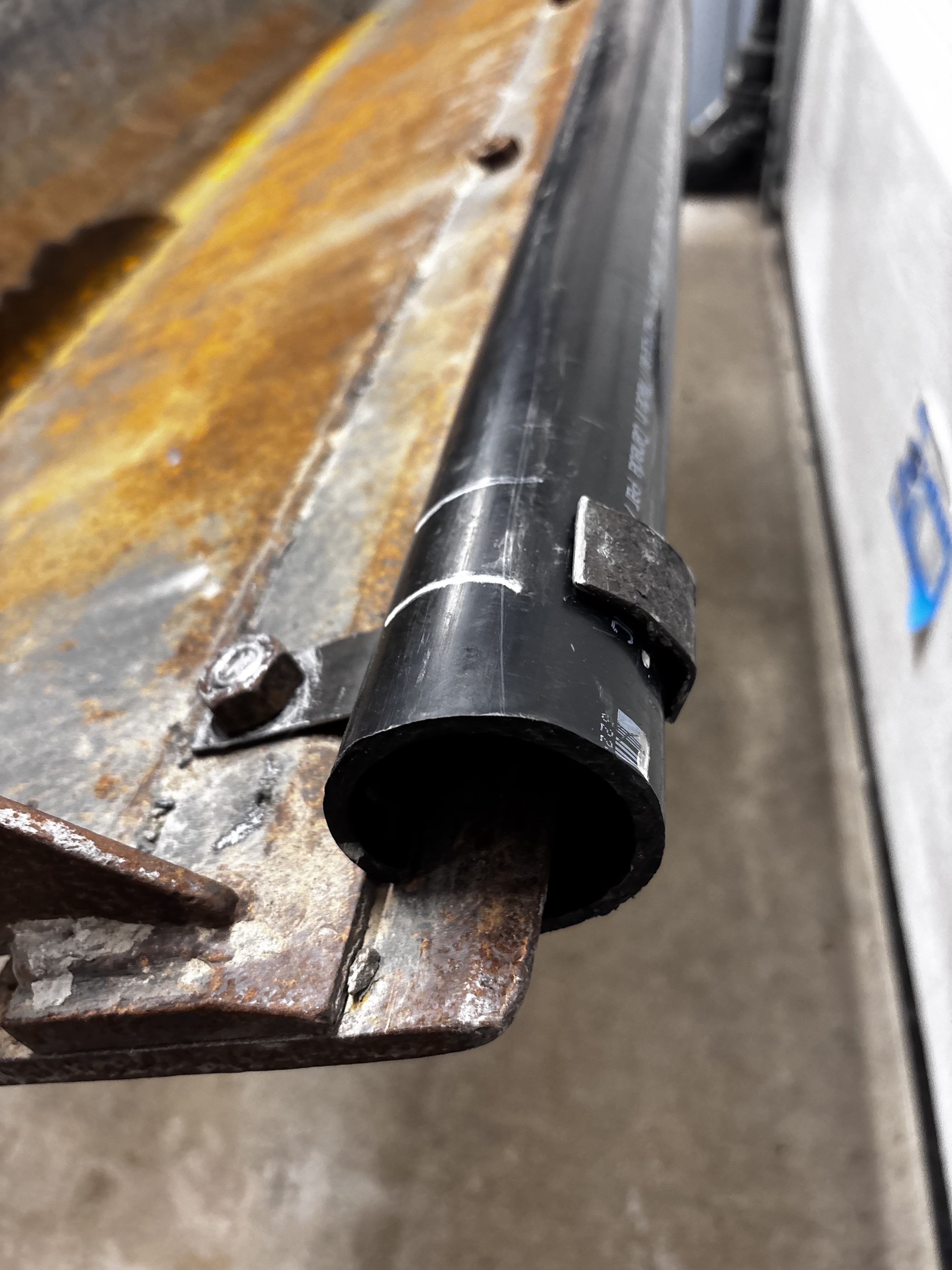 That white pvc will shatter you need the black,it’s more flexibleI'd just drill a hole here on both sides and run a bungee up to the top ...View attachment 4319449