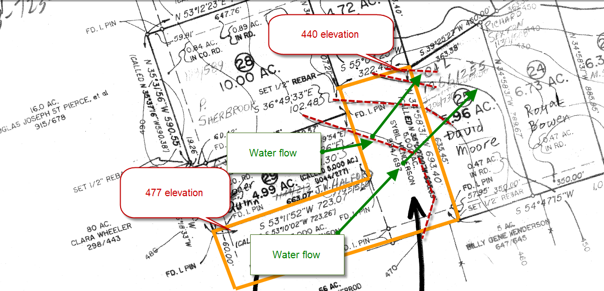 Before this Internet thingy :D I used to get topographic maps for land I was looking to buy. They have elevation marked on the map. In the Internet Age my rural county has a GIS aka mapping office that is online. They show property lines, topographic maps and even areal photos overlayed on the property lines.