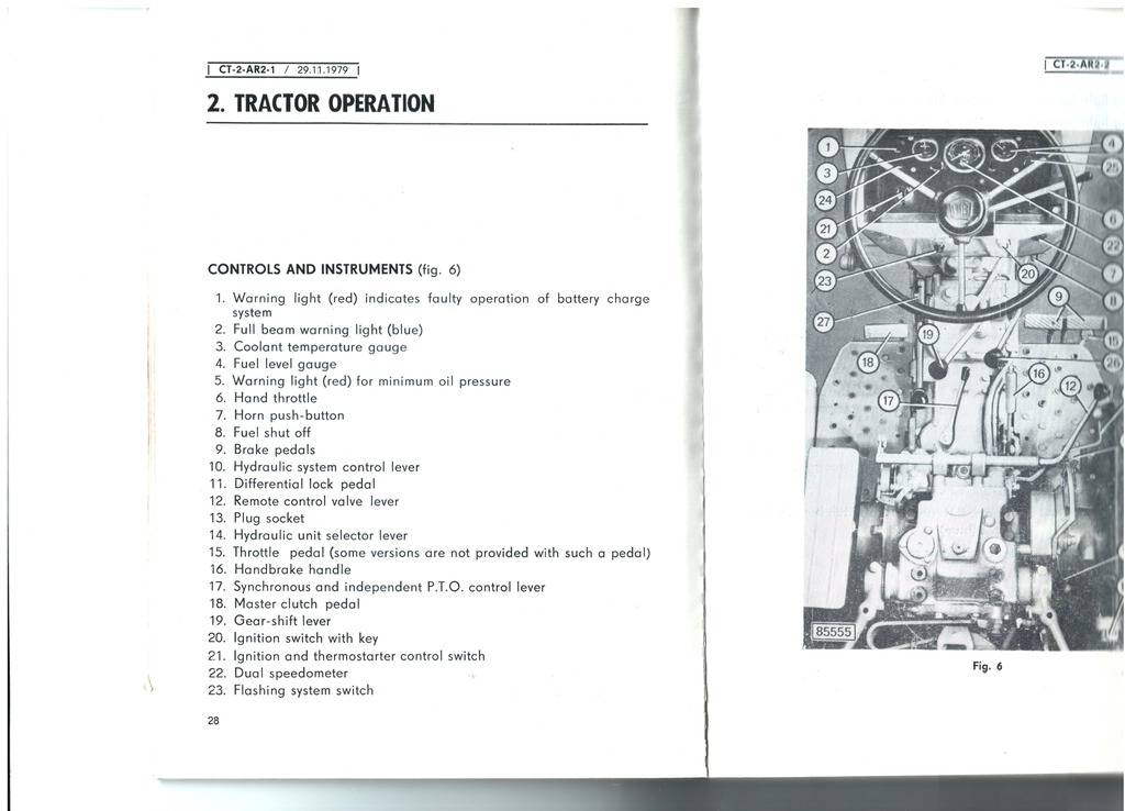 OK - the Instruction Book that I have covers the UTB 500 Special, 530 & 350 Special (including the "V" versions of those). It doesn't cover the 445V specifically, but the controls on my 445 DT are the same as these, so most of the info is applicable to yours. I enclose a picture & description below. Note that number 27 is the PTO clutch lever you were enquiring about in one of your pictures.