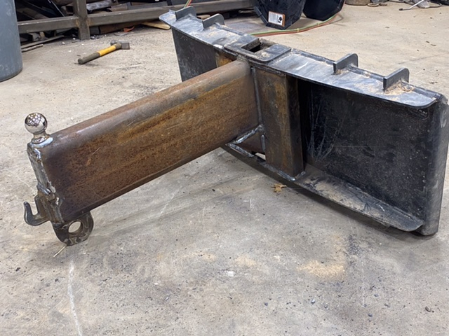 Looks strong enough to pull a trainI built this today for my tractor and skid steer. It has a ball for moving trailers and a chain hook and eye for carrying suspended loads or pulling out fence posts.