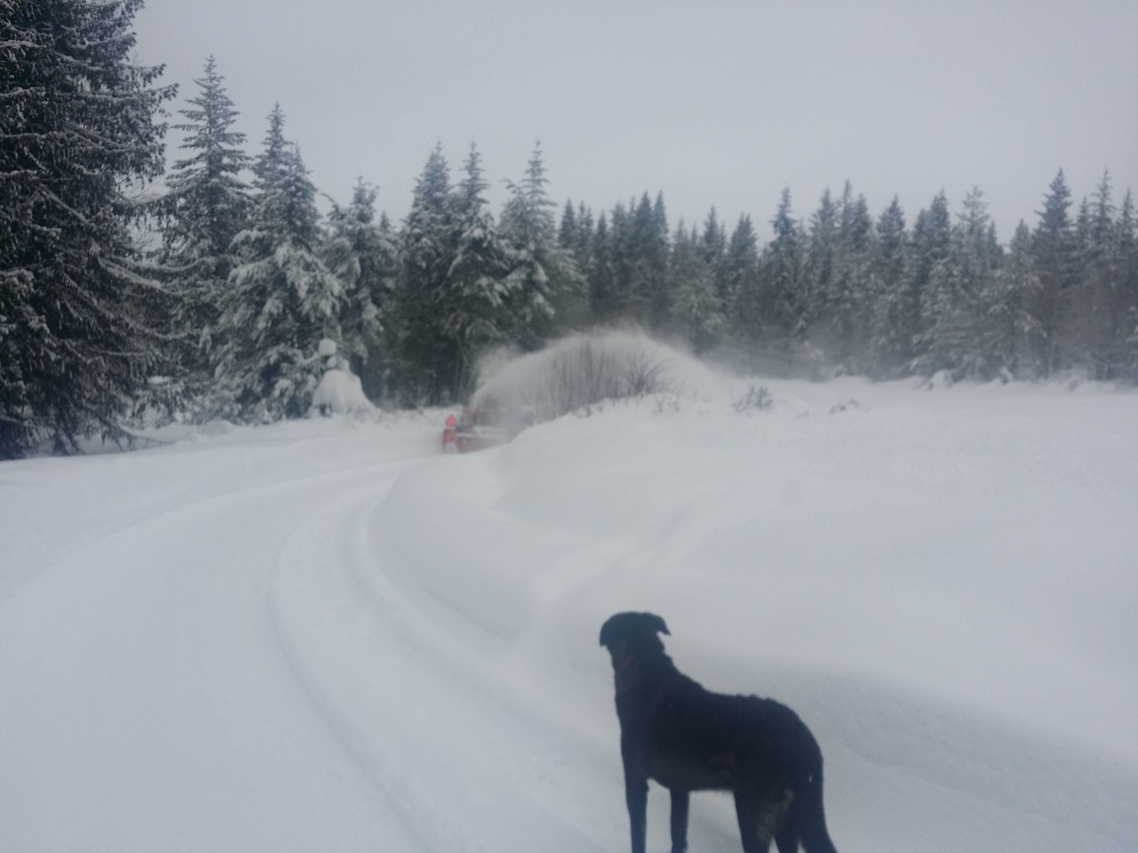 I finally got a video and photos of my blower clearing about 6" of snow this morning.