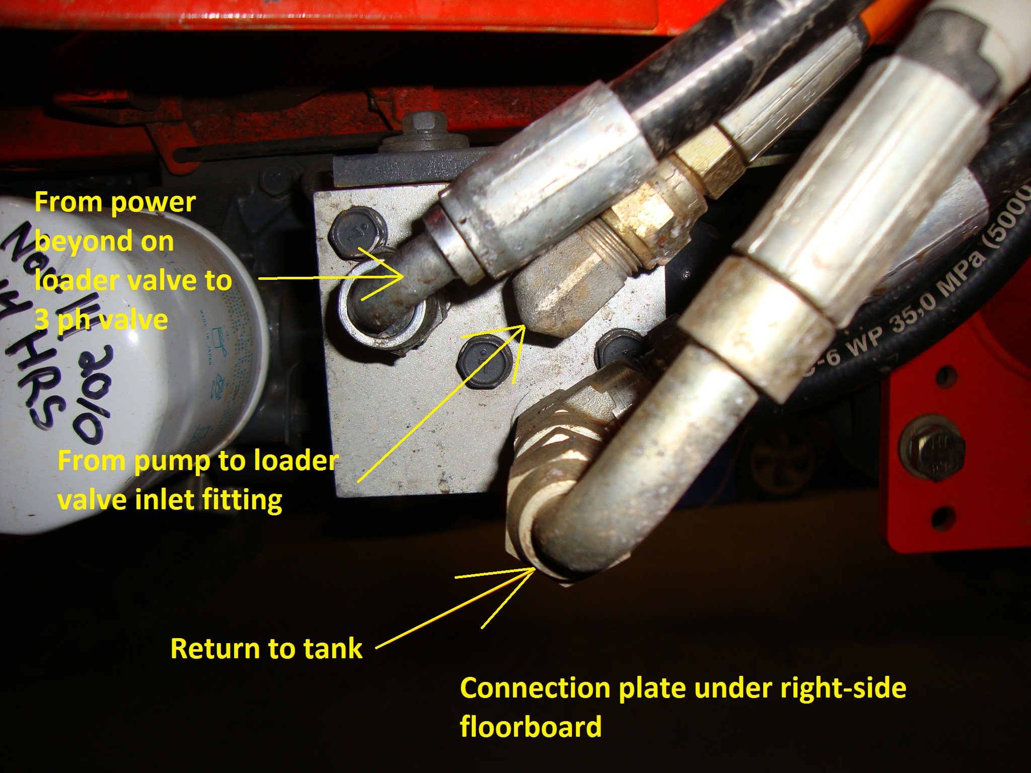 I'm on a job in Texas right now and the tractor is in Oklahoma. From memory, I think that's it. I know the FEL plumbing is in that location but may not be exactly as pictured. Is there any difference in hydraulic pressure between the location in the photo and the 3-Point? T-ing is better than cutting if the pressure is the same. Thanks for the reply.