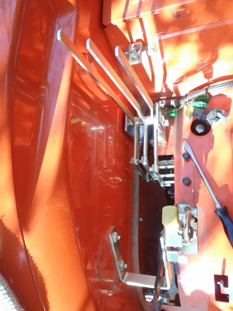 Almost all done. Kit was short 3 of the tiny hair pins that secure the links to the levers. So I used tiny finish nails, just to get everything pinned together so I could check that nothing was binding. Will get some at the hardware store and pull the nails. The tiny pivot pins that secure the link to the valve had their cross drilled holes undersize so the hair pins would not fit. Had to open them up with a teeny-tiny drill The 3pt valve actuator had some kind of clevis (for draft control?)that interfered with the valve stack, so it got cut off, since I don't have draft control. Have one small drip on the first valve coupler that I need to tighten, but it was getting dark and the skeeters were hungry.