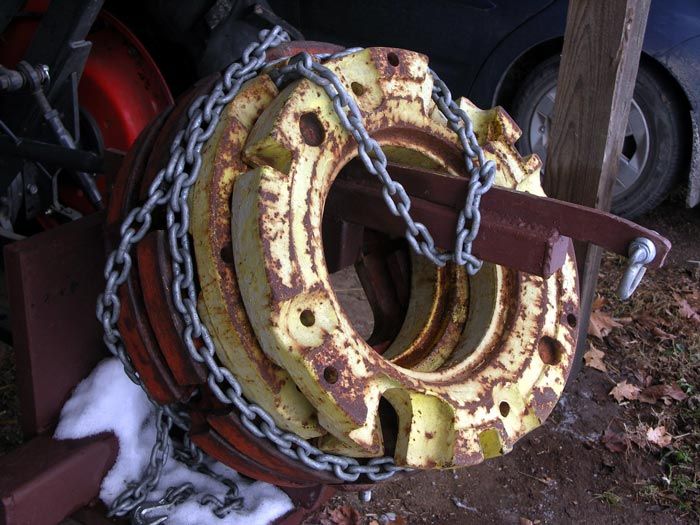 Don, I have a pair of old Oliver tractor rear wheel weights that I originally was gonna use. But they too, like yours are just an inch too big. Didn't want to stick them out enough to fit. Luckily my neighbor hooked me up!!! :thumbsup: