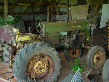 Under one of her sheds, she has these two old tractors "just sitting there". Most likely her parents who used to live in the house and farmed the land while they were alive.