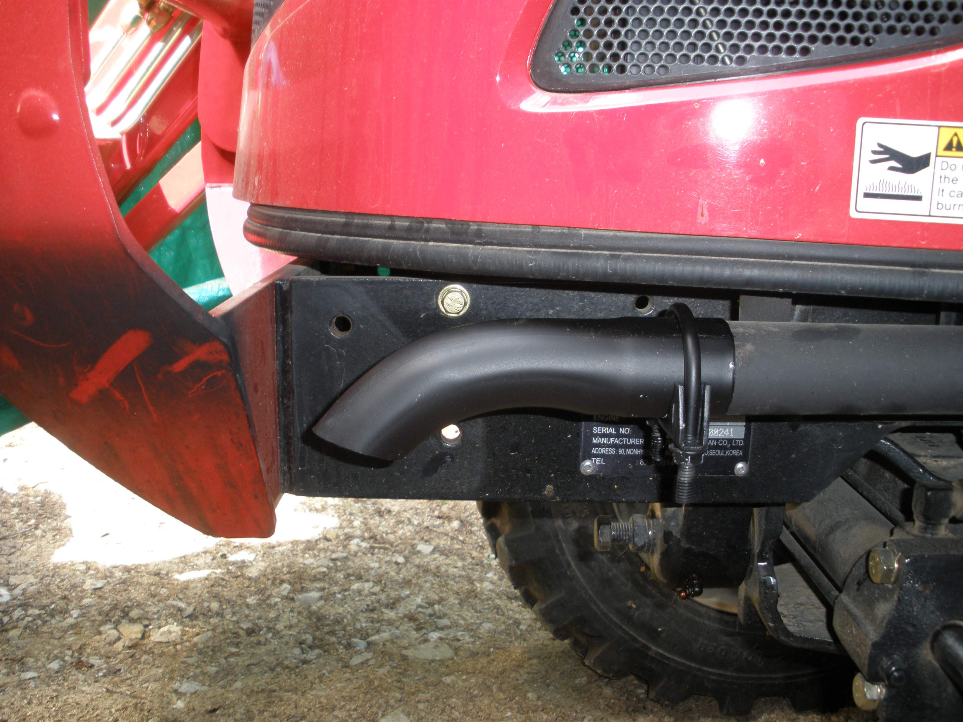 I have posted this before, but it's worth repeating: git yerself some Rejex, a cleaner polish made to remove jet exhaust stains from million dollar airplanes. My brother flew this for a while, and I learned about Rejex when I was visiting him and helped clean up the sides of his turbo-prop before a little trip to Key West. Not a tractor, but just kerosene soot, after all. It was stained before hand, but after cleaning / protecting, it stayed nice and white.