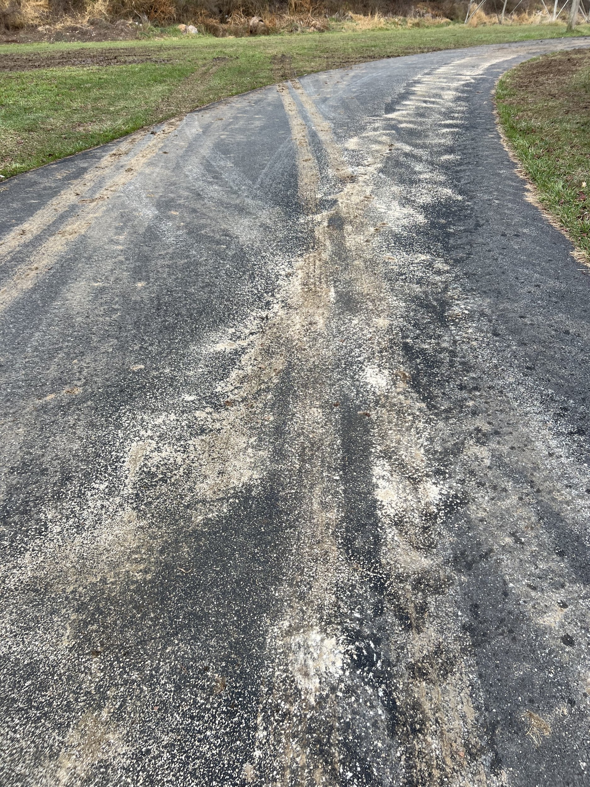 1. Wait until it dries and seal driveway. Issue with that is the driveway is 1000’ long. Might look odd to seal only 100-150’ of it. Whole driveway would be very expensive