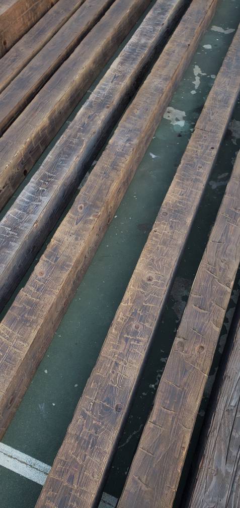 The last update I had just finished the steps up to applying the minwax weathering agent. Let them sit in the sun for a couple days and the temps have been 95+... didn't realize how much kiln died lumber would cup. So I've got a bit of straightening to do when I install them, but nothing that will ruin the beams.