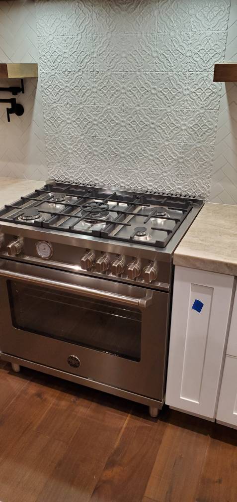 The range, I'm excited about. At my last house I wanted one of these professional ranges but didn't want to pony up the money for one so wound up with a kind of pro-sumer kitchenaid model (which is great, actually, at about $1400 at the time). So this time around while blowing money on everything else I decided to fixate on a Bertazzoni range. These don't come cheap so I found a place that sells scratch and dent models online out of Arizona. Just so happened back in July they had the exact size and model I wanted, for 50% off and free freight. The photos looked like it was still new but it was listed as used. I took a bit of a risk and when it arrived sure enough it was brand new but had one dent on the side panel that hides behind the cabinet anyway. So I got this $4 350 model for $1,960.