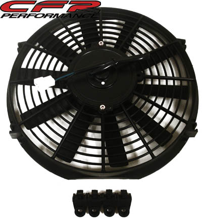 10 inch high performance universal electric radiator cooling fan. The fan is 10pcs flat blade type. The motor is reversible and the fan is 12Volt 2407RPM and 775CFM. Four point mounting bracket kit. Dimensions 11 1/4 "x 10 5/8" x 2 1/2" This fan is high torque motor features sealed ball bearings and fully balanced blades which insure low noise levels and a long life of smooth operation.