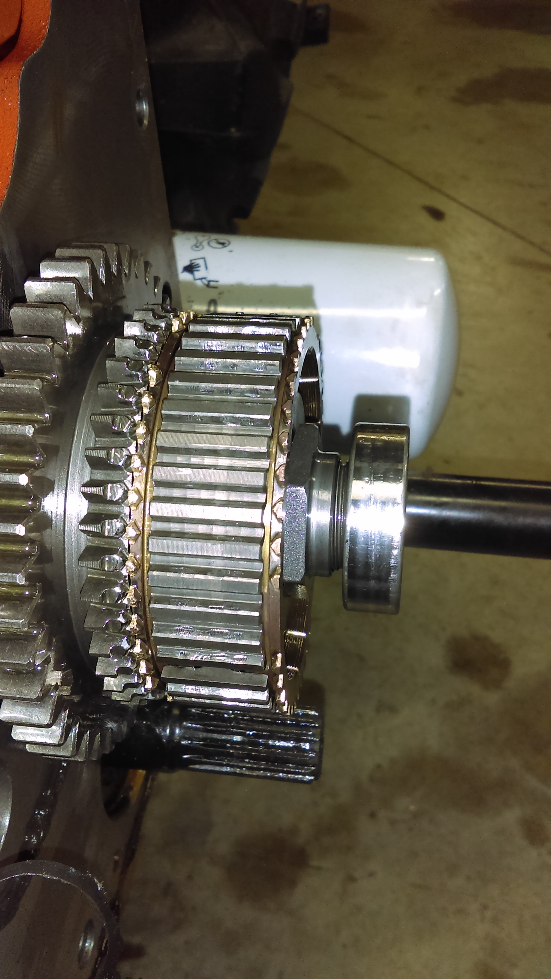 The three little detents I call them were scored up badly as well as the hub they fit in. Lots of scoring in the hub. I replaced everything in this picture as well as both brass syncro rings.Also got a new nut but the bearing felt good.I have no clue on the torque on the nut going back but it had two full threads showing when installed.