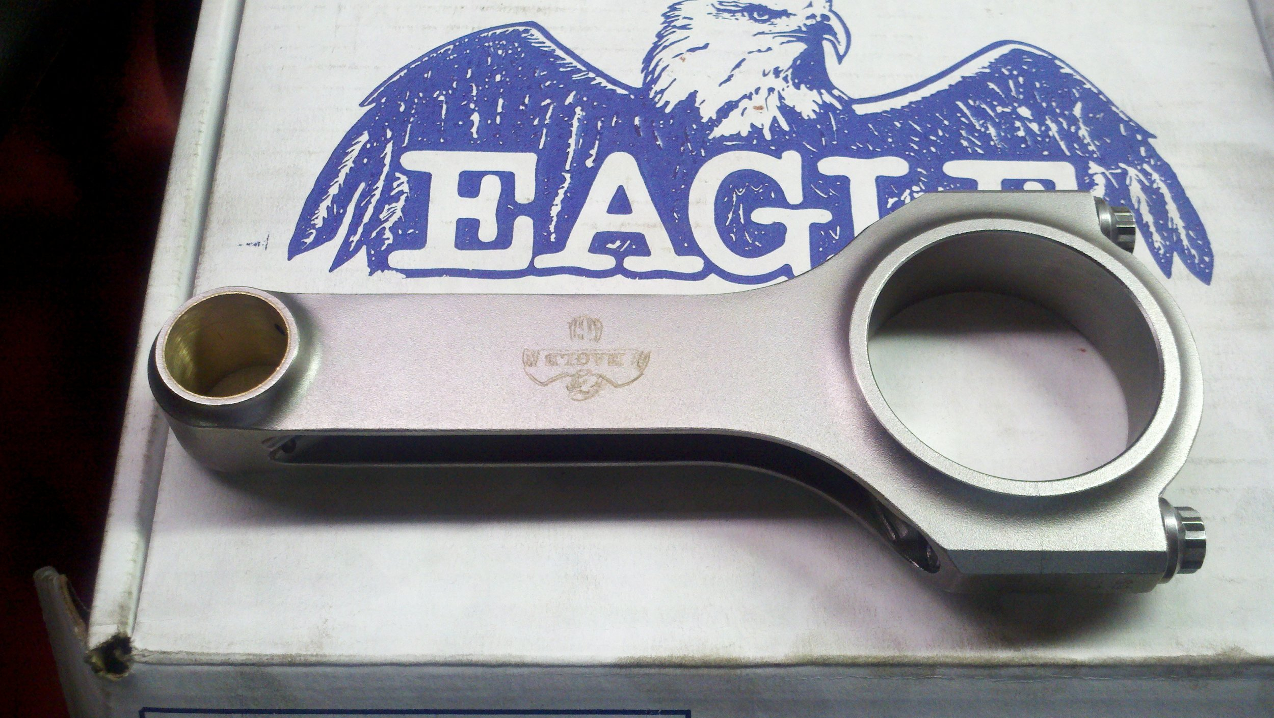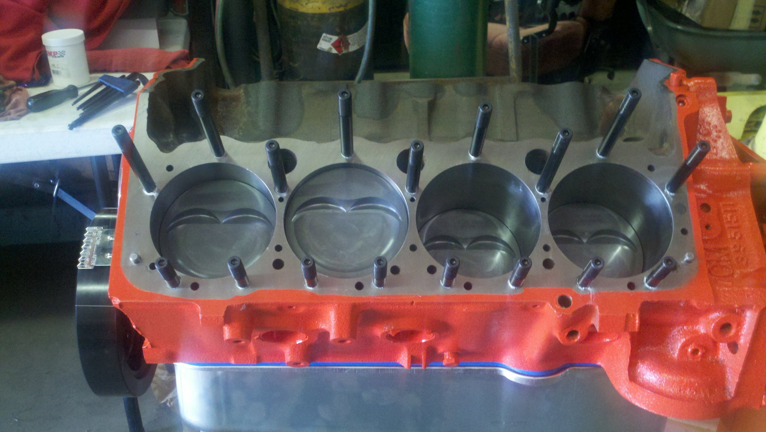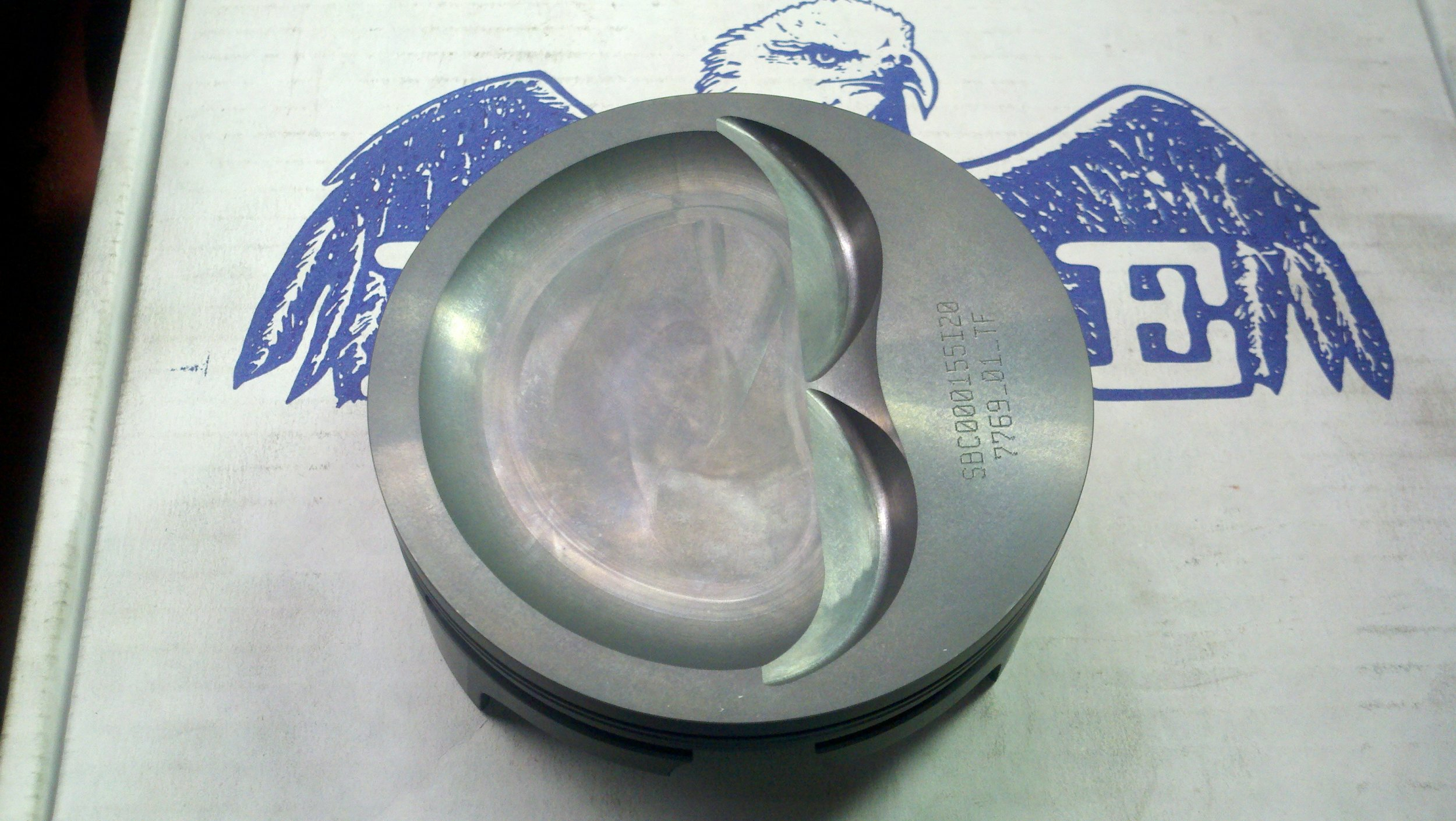 I don't remember what the OEM equivalent cam part number was, I put it together 5 years ago, and I've slept since then. I'll have to look in my build up book and find out. According to the head chamber CCs, the head gasket thickness and piston dish CCs, it should be around 10.25:1 compression ratio. I'm going to put a compression gauge on it before I fire it up just to get an idea of what the static compression ratio really is. Bore is 4.155" and stroke is 4.00". Had to do a little grinding on the block and use a special pan to get the rods to clear everything. The rods are asymmetric, one side has releif cut for cam clearance. Almost had to use a small base circle cam, but it clears as is.OEM #3863151 cam? What a great choice for the 'package'.(really 'comes on' at >2500 rpm, just right with 3.55:1)