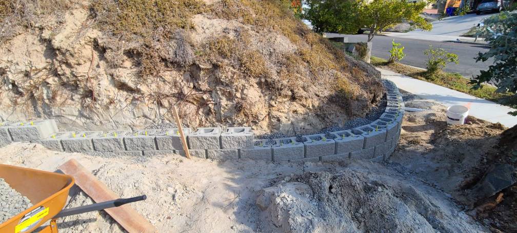 Yeah we'll use the fabric over the gravel before topsoil backfill.Are you using filter fabric over your gravel to keep it clean and free draining. All precast retaining walls sold in Ohio are good for 4 ft of height with no additional engineering