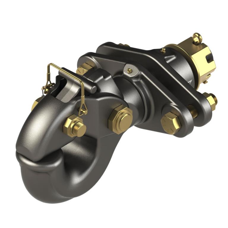 I was able to find a heavy twisted clevis that I have attached, with normal pin, to my drawbar and the tongue of my farm wagon - looks just like your red or yellow ones - then fits nicely into this clevis. Its called a 7/8 x 3 twisted clevis - it is rotated 90 degrees and allows the tongue to slide right on. Found it at the local Farm/garden store.