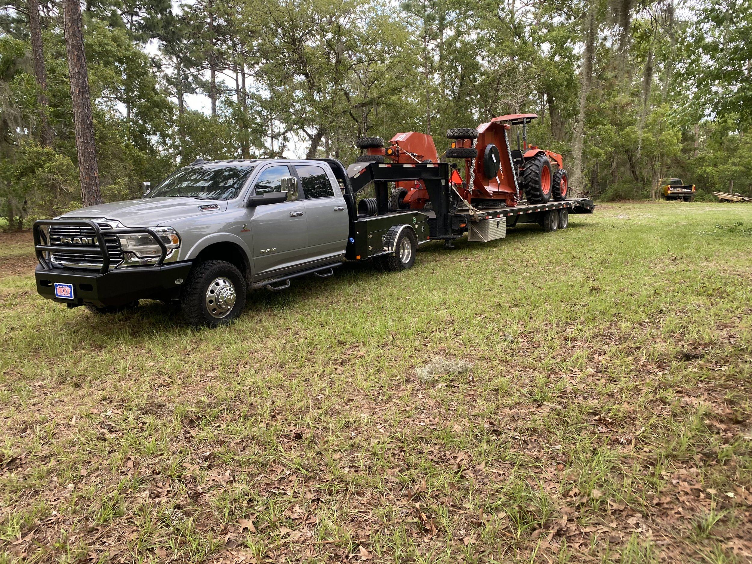 I'm really glad I have the Rhino trax foam filled tires. We had aircraft tires on the BH at first and replaced those with laminated tires. We don't run on paved roads much so the aircraft tires aren't worth all of the flat issues. Of course it rained all day yesterday and its looking like rain most of today. I should be putting it to work this afternoon and the rest of the week. The 7040 used to run the 2615 just fine. I can tell this mower has higher HP gear boxes as its a little harder to get going.