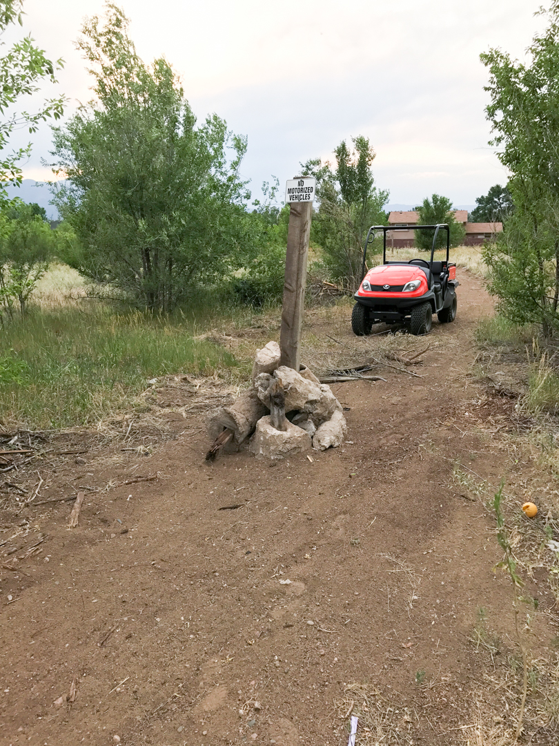 I noticed yesterday someone had pulled up the landscape timber to re-open the road and used that concrete to close the new trail.