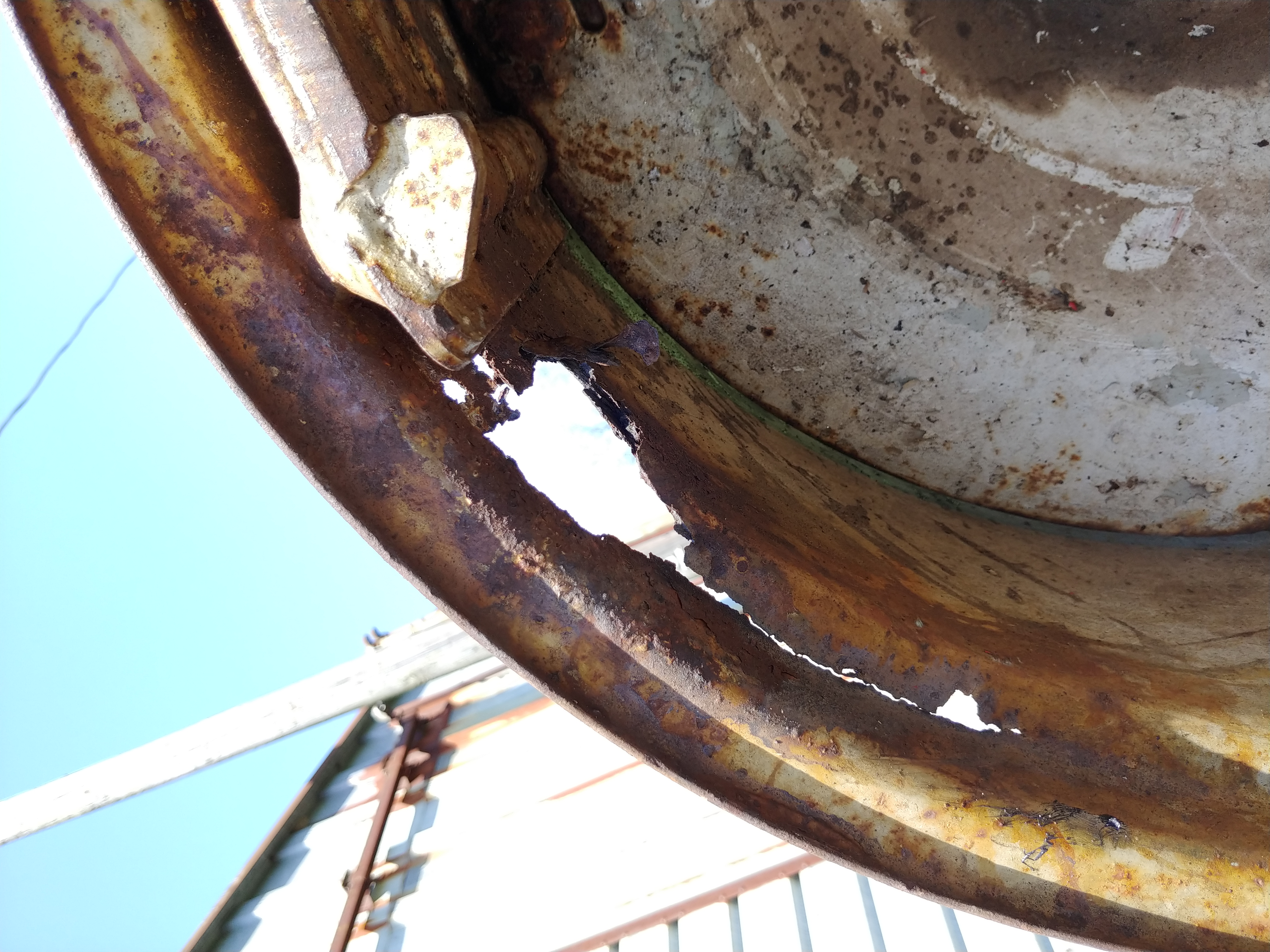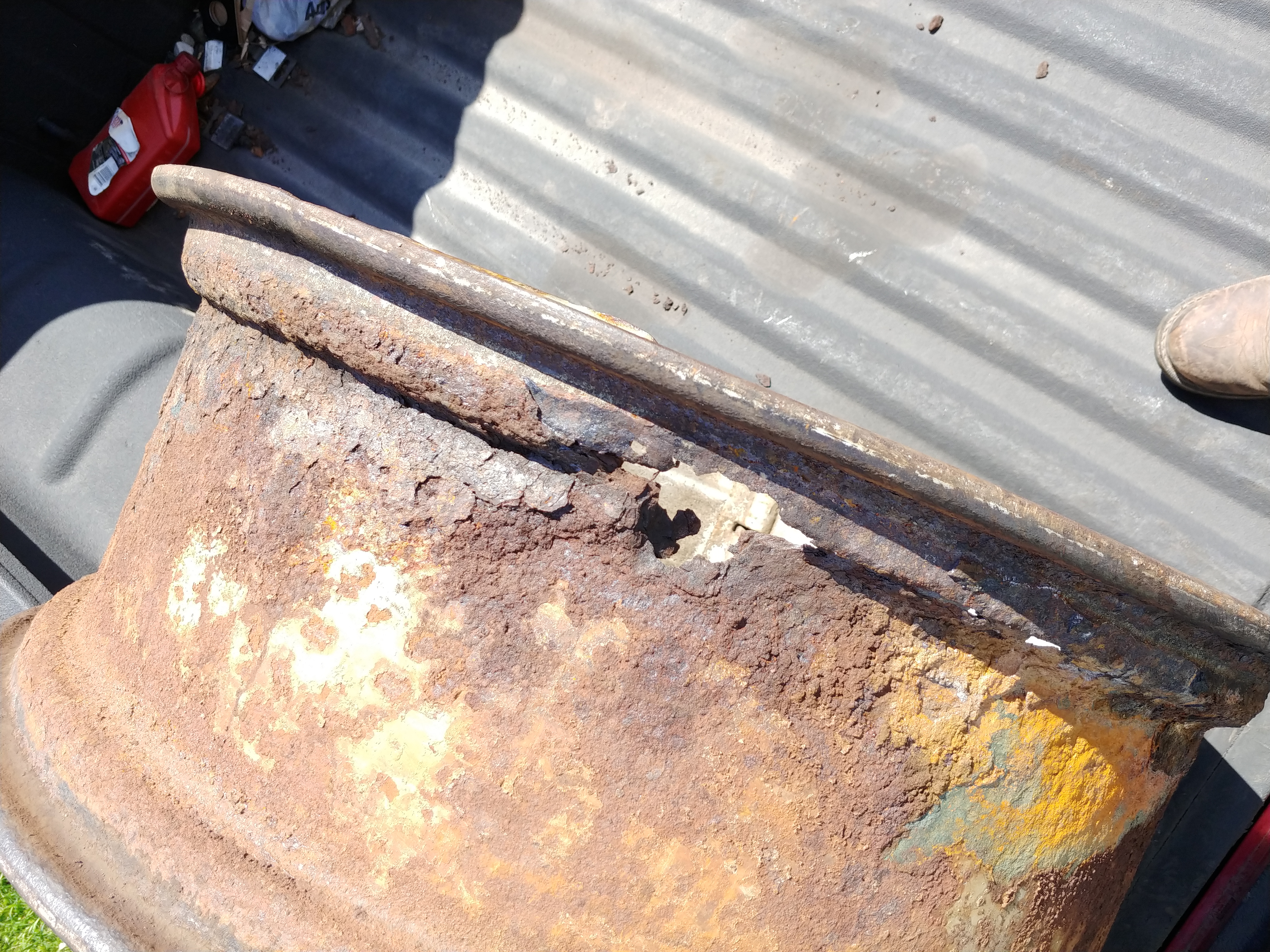 Here's the state of the rim. I don't know if it would be worth sandblasting and patching at this point. Getting a normal set of rims wouldn't be an issue unless I want to use the plow. Current rims were adjusted for the 2 bottom we have.