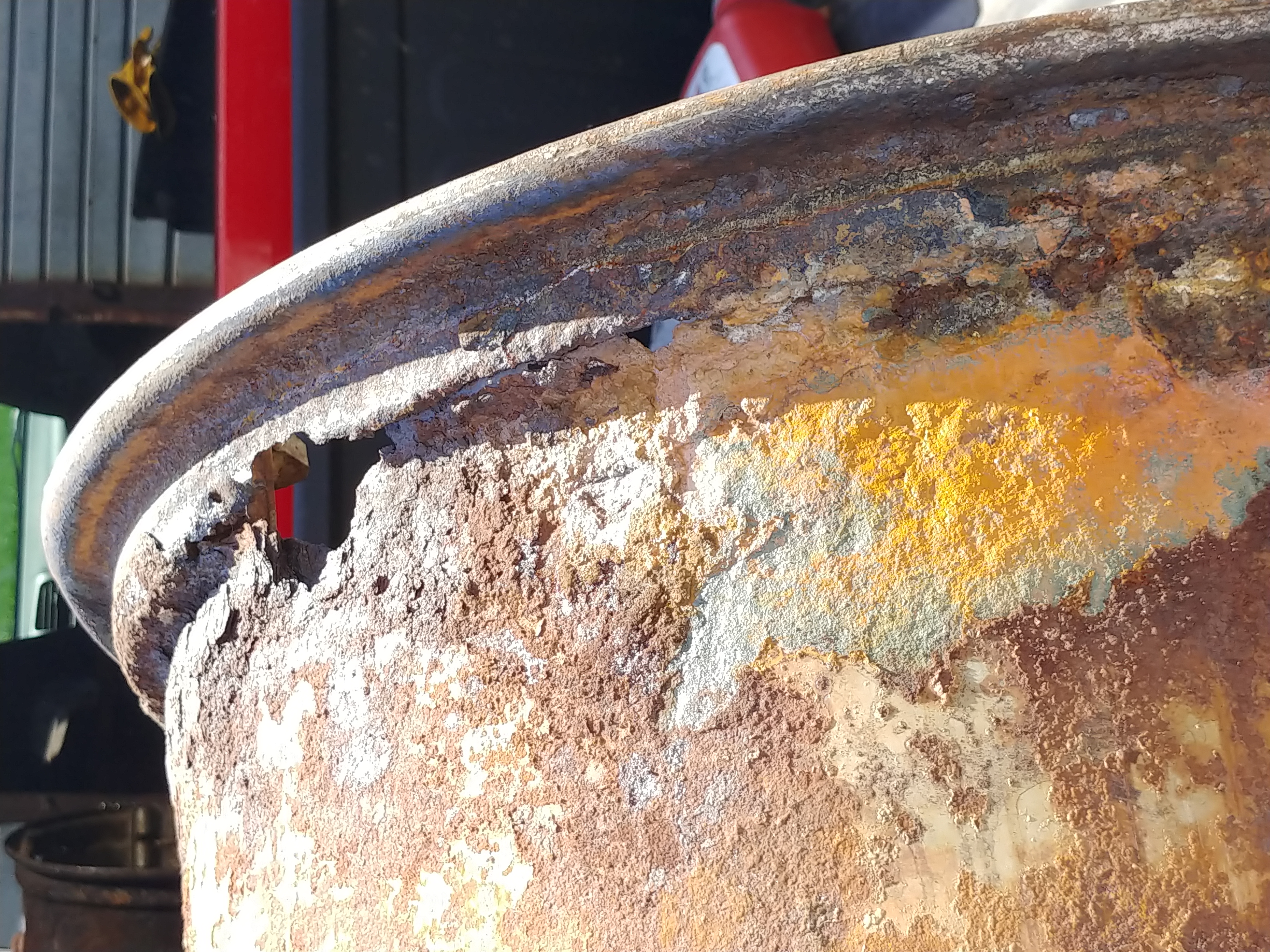 Here's the state of the rim. I don't know if it would be worth sandblasting and patching at this point. Getting a normal set of rims wouldn't be an issue unless I want to use the plow. Current rims were adjusted for the 2 bottom we have.