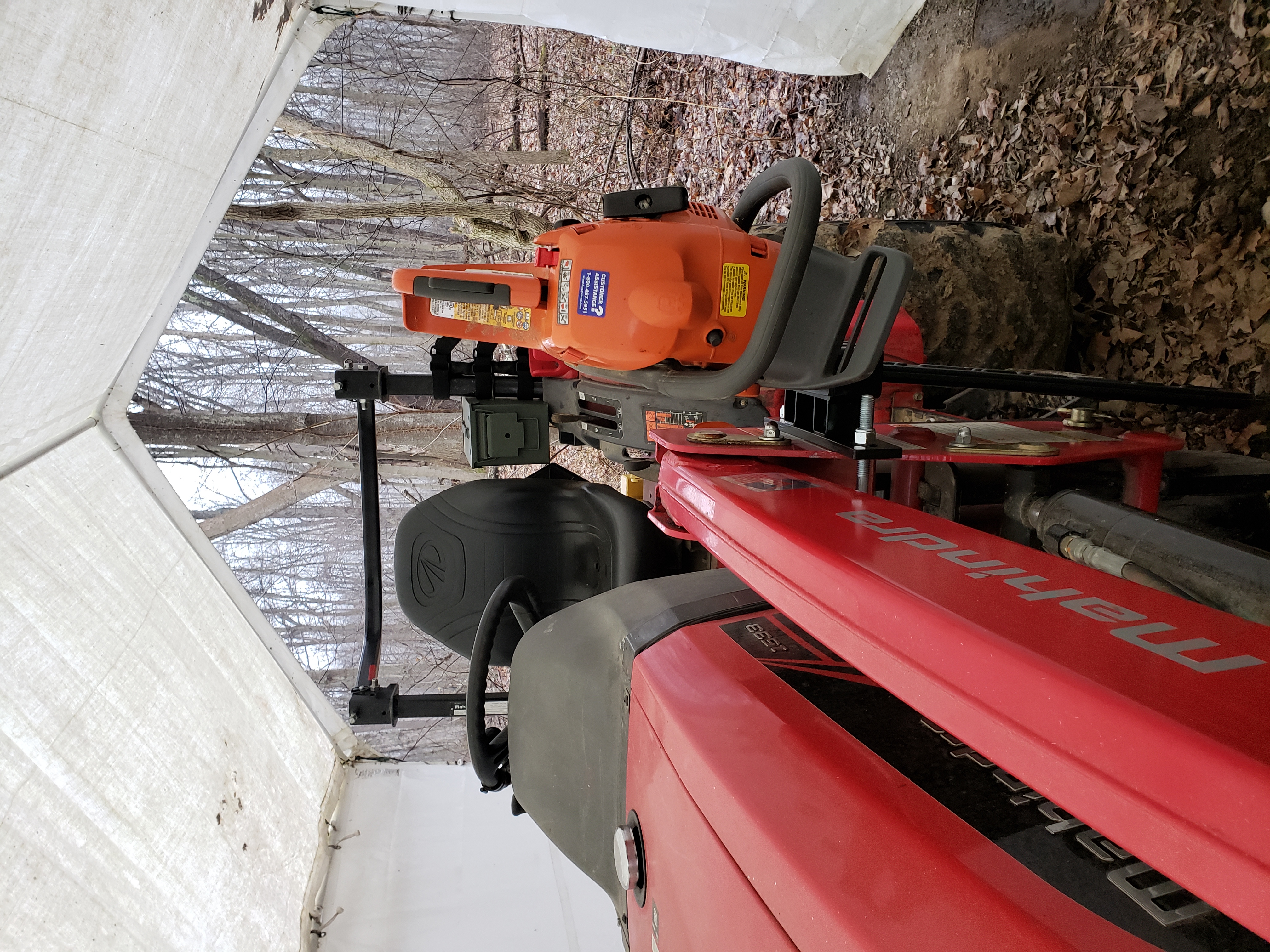 The SawHaul is the best accessory I've found for carrying a chainsaw not just on a tractor but I also have one on my 4 wheeler.