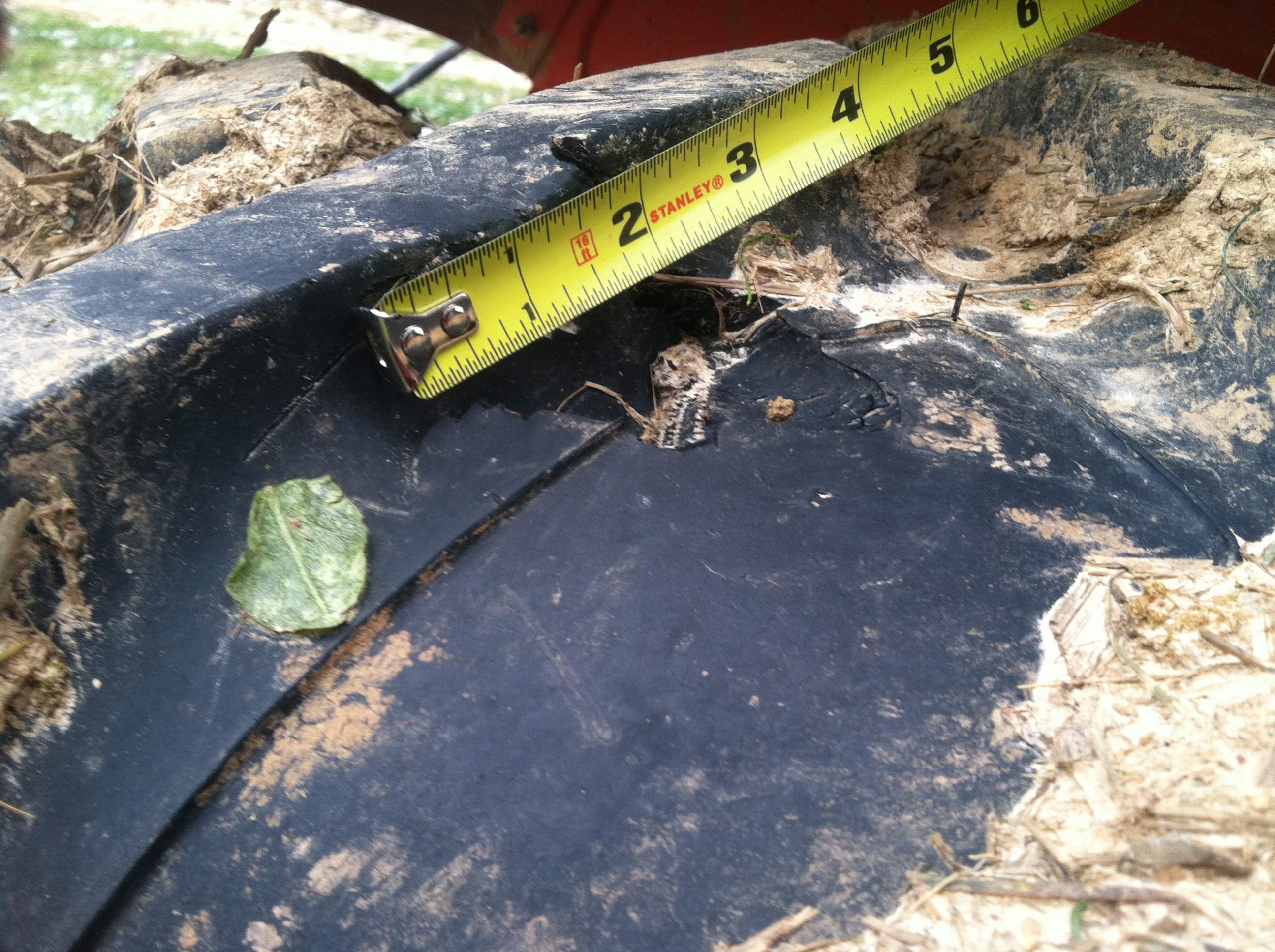Something terrible happened to me this week. I was driving near a old fence row that I had torn out and I ran over something very sharp with the rear tire. It went flat in less than two minutes and I lost almost all my fluid. The tractor has less than 150 hours on it and I think it is too big to patch from the inside.