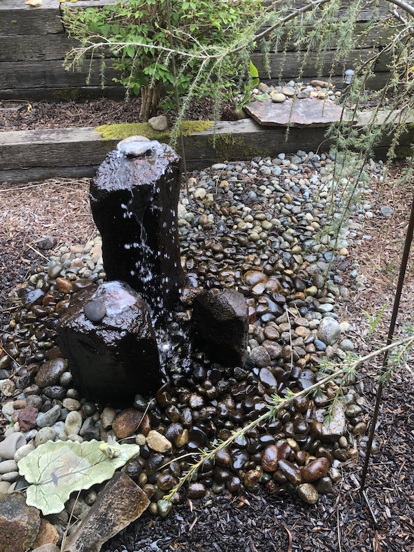 A little more than half the trees in this picture have no bark and are falling down due to Emerald Ash Borer. I am splitting these as they fall for firewood, so not going to waste.Thanks, I can't remember the pump size but it isn't big. Two of the three rocks were cored 3ft and 2ft heights, PVC 3/4in ID cemented in. they sit on a square grated reservoir. I plumbed it to the house water, and there is an auto shutoff float to keep it topped off. Put it on a timer to give it rest at midnight to 6am. Also a waterproof uplight is on a dusk to dawn timer. Sounds very peaceful and looks great at night with other 12v garden lighting nearby.That looks nice, you built the walls too? What size pump?