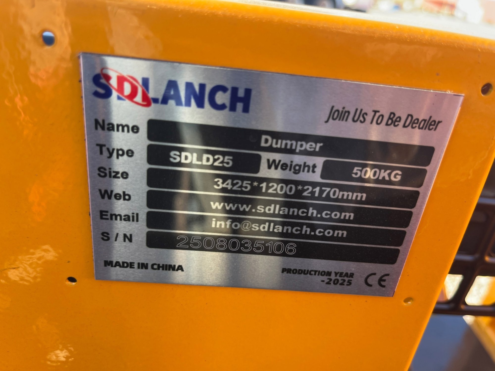 (El Reno. OK) SDLD25 MINI DUMPER UNUSED UNIT, ZERO HOURS, 4 L 3 W BUCKET, 9 INCH RUBBER TRACKS, MAX LOAD CAPACITY ~1,500 KG (3,300 LBS), 8.6 KW GAS ENGINE, TOP SPEED ~9.3 MPH ITEM# 20043