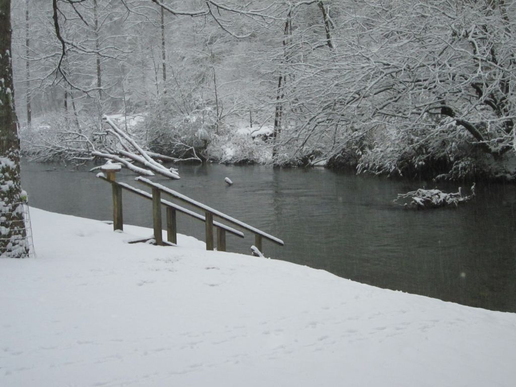 BTW...the normal depth of the water at the base end of the tree is close 5'-6'...it seems to be suspended some by the upper end so I may be able to swing the base end closer to the bank but that does not really solve the problem...(also BTW...it snowed today)