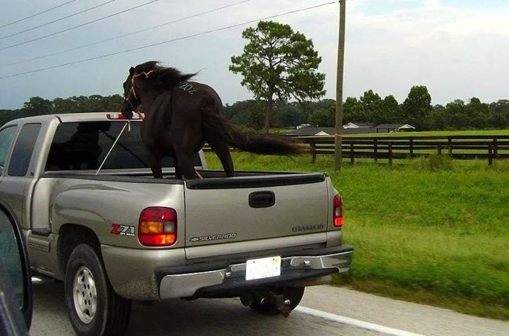 I'm not sure about it being "wrong" to haul a horse in the back of a pickup.