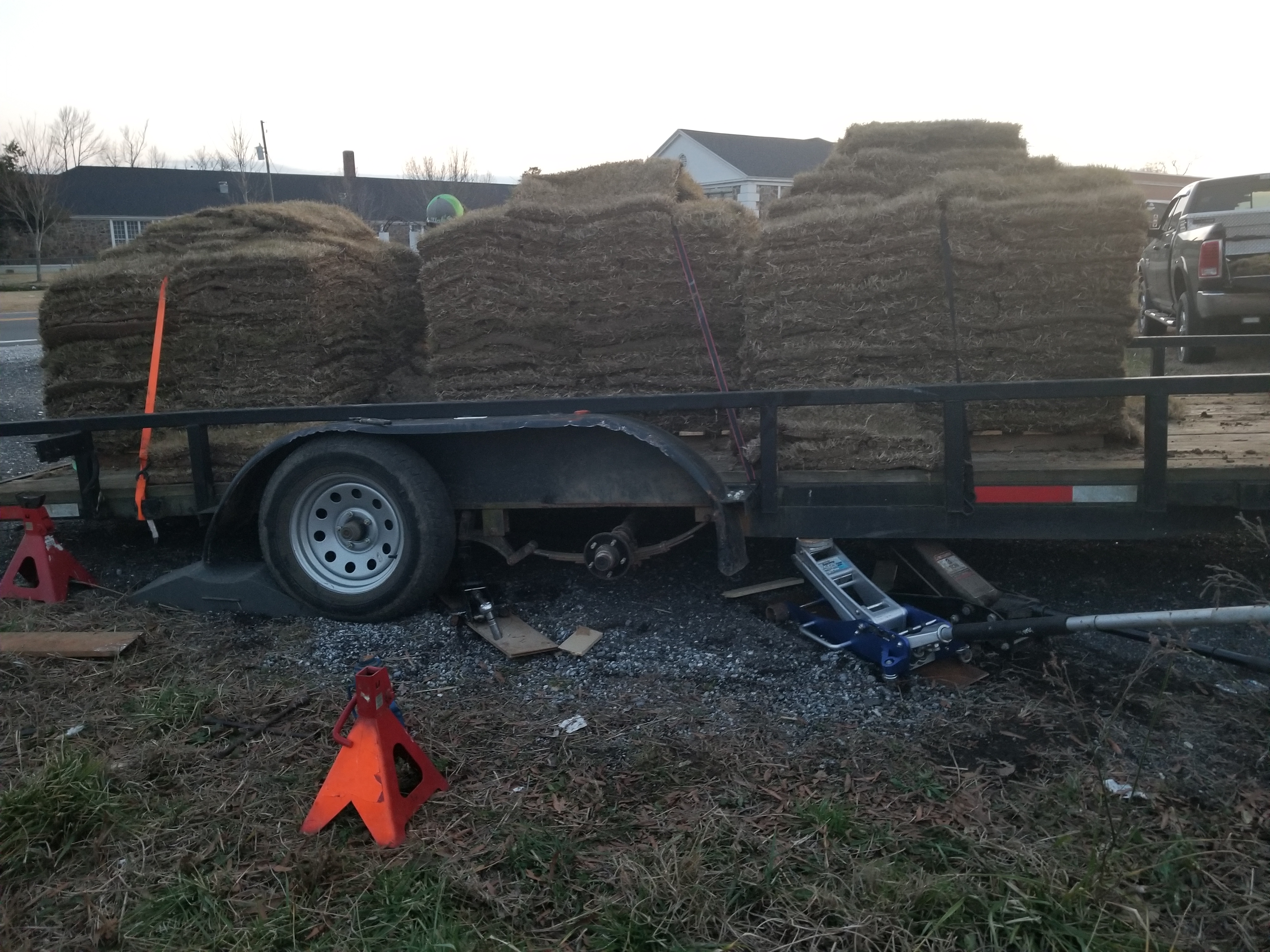 So it took two jacks to lift it ? That trailor is probably carrying a load at least 2 times what it should be. Maybe 3. Wow