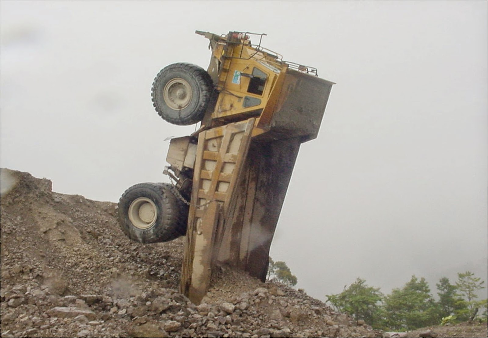 Artifacts aren't a clear indication of Photoshop when they're in heavily compressed jpeg images, because transitions from areas that compress better than others tend to cause them. In this case as others mentioned a frame from a video - video frames tend to have significant compression because videos are huge otherwise and also you tend to get away with artifacts more in them because you're (usually) not staring at a single frame.It's definitely been photoshopped, there are artifacts all around the outline of the truck, but a chain hanging above and to the right of the rear tire looks to be hanging in the proper orientation for the truck standing up like that.