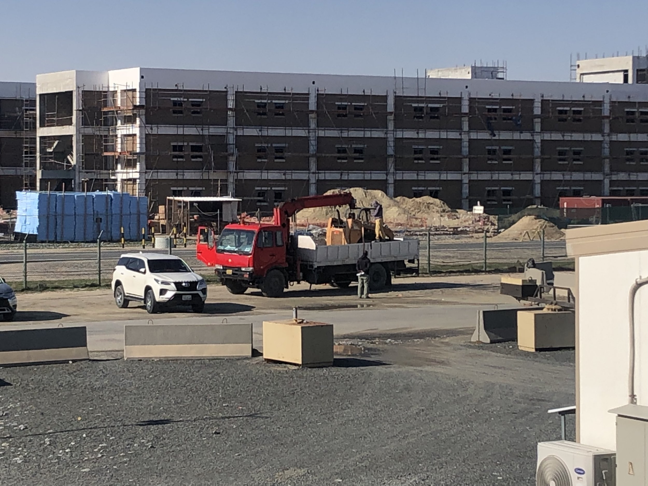 Had to run back to my room for my camera so didn’t get the shot of it being loaded. Guess outriggers are just for decoration around here, that truck frame must hate life.