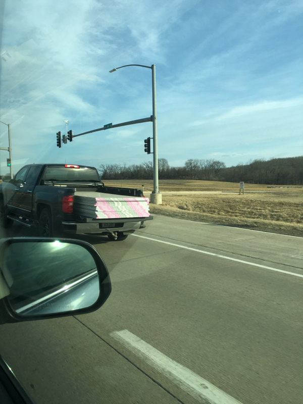 Nothing like a sheet of drywall floating off of the truck and into your windshield at 60+ MPH...