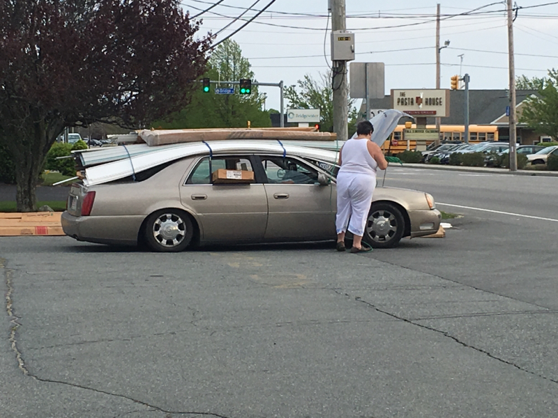 Here is the best one I've seen in a long time, my girlfriend I drove past a pile of used vinyl siding with a "FREE" sign and this wacko loading up his Cadillac with it!