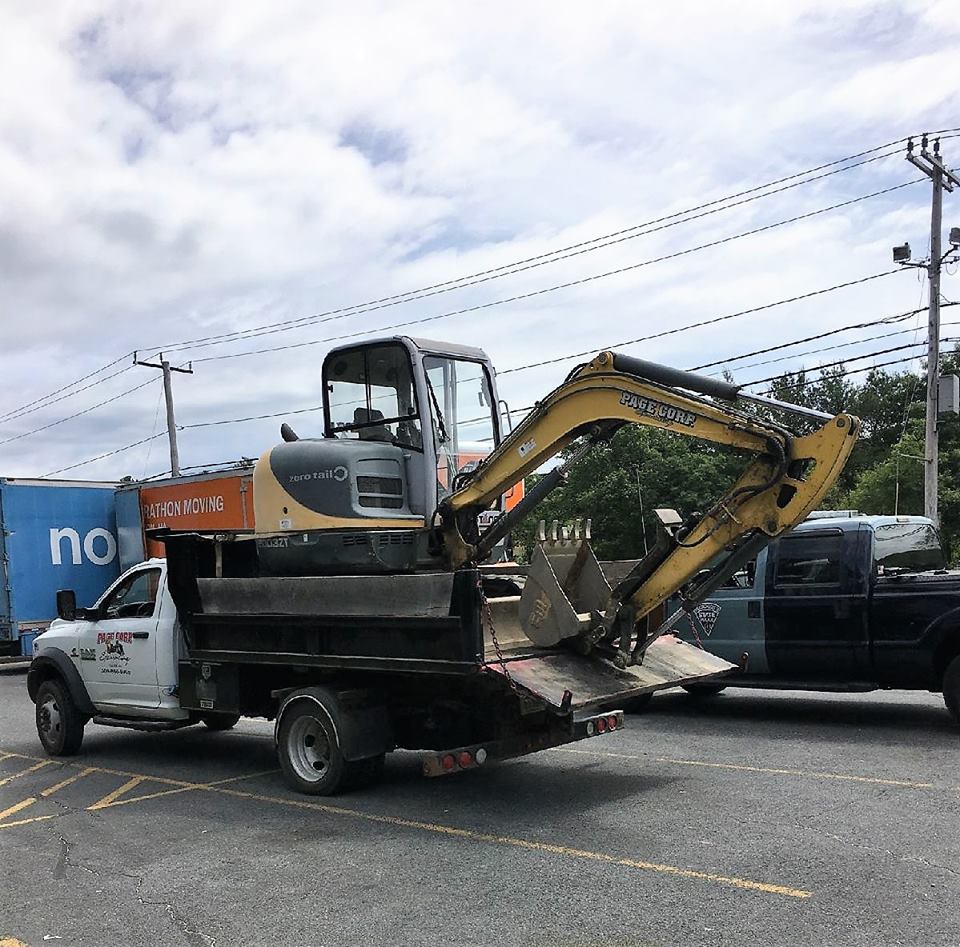 What could go wrong? ... Yesterday morning, Trooper Christopher Kaszyk of the Massachusetts State Police Commercial Vehicle Enforcement Section was on patrol on Route 58 in Carver when he observed a Dodge RAM 5500 truck carrying a medium-sized excavator estimated to weight about 10,500 lbs. In addition to exceeding the truck's acceptable gross vehicle weight rating by 4,450 lbs., the excavator was secured with just one 3-inch strap (with an estimated securing capacity of 3,000 lbs., or less than one-third of the weight of the excavator it was holding in place). The driver was fined for those violations as well as for the weight on the rear axle exceeding the tire ratings, having an expired expiration sticker,a missing wheel fastener, and having no warning flag on the projecting load. Because of the public safety hazards posed by the truck, Trooper Kaszyk placed it out of service until the excavator could be off-loaded.