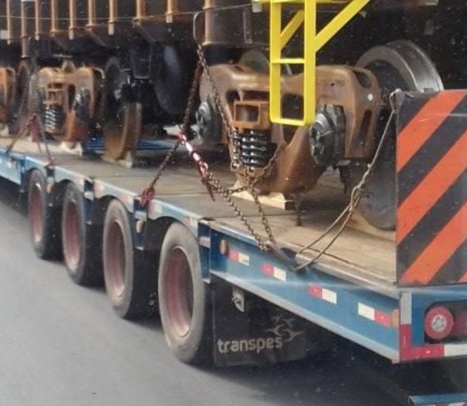 I have done something similar, it worked but was not ideal. His chains were too long and that was his method of not dealing with the tail end.New rail cars being delivered to an isolated railroad in Brazil.