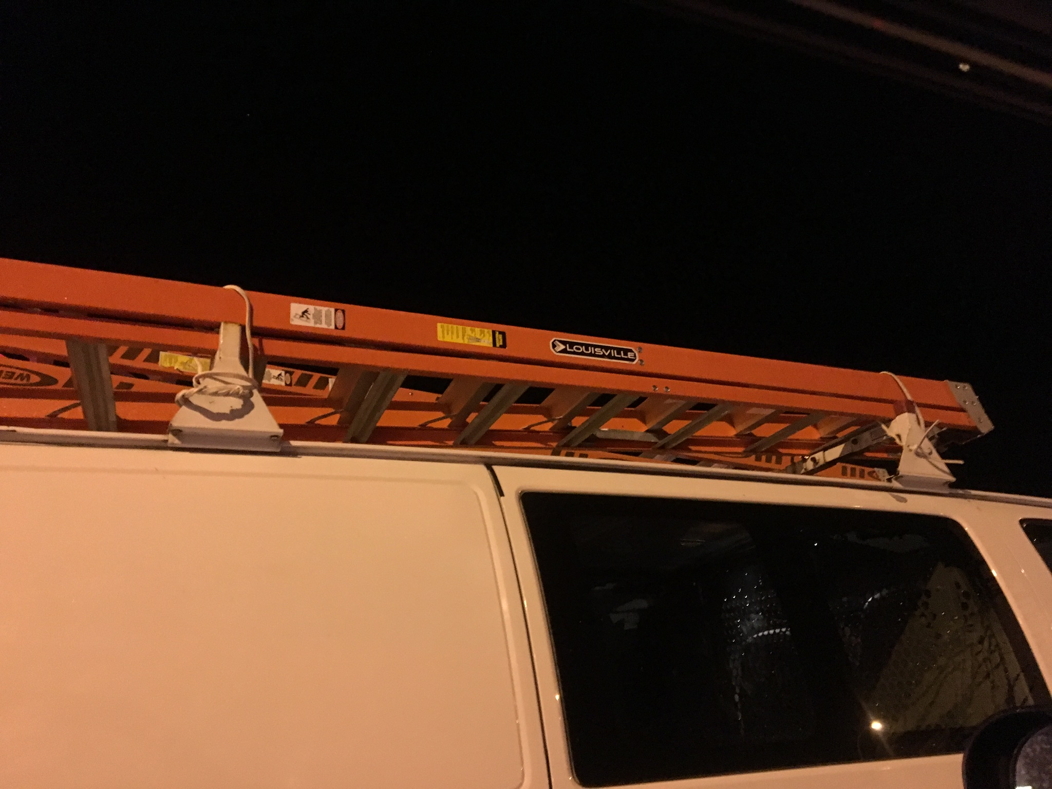 I have had co workers jam the brakes and have to go into the intersection to retrieve their ladder. HahaI saw this today while parked next to this van. Probably secure enough but using romex to tie down a ladder would get people fired by many companies in todays world.