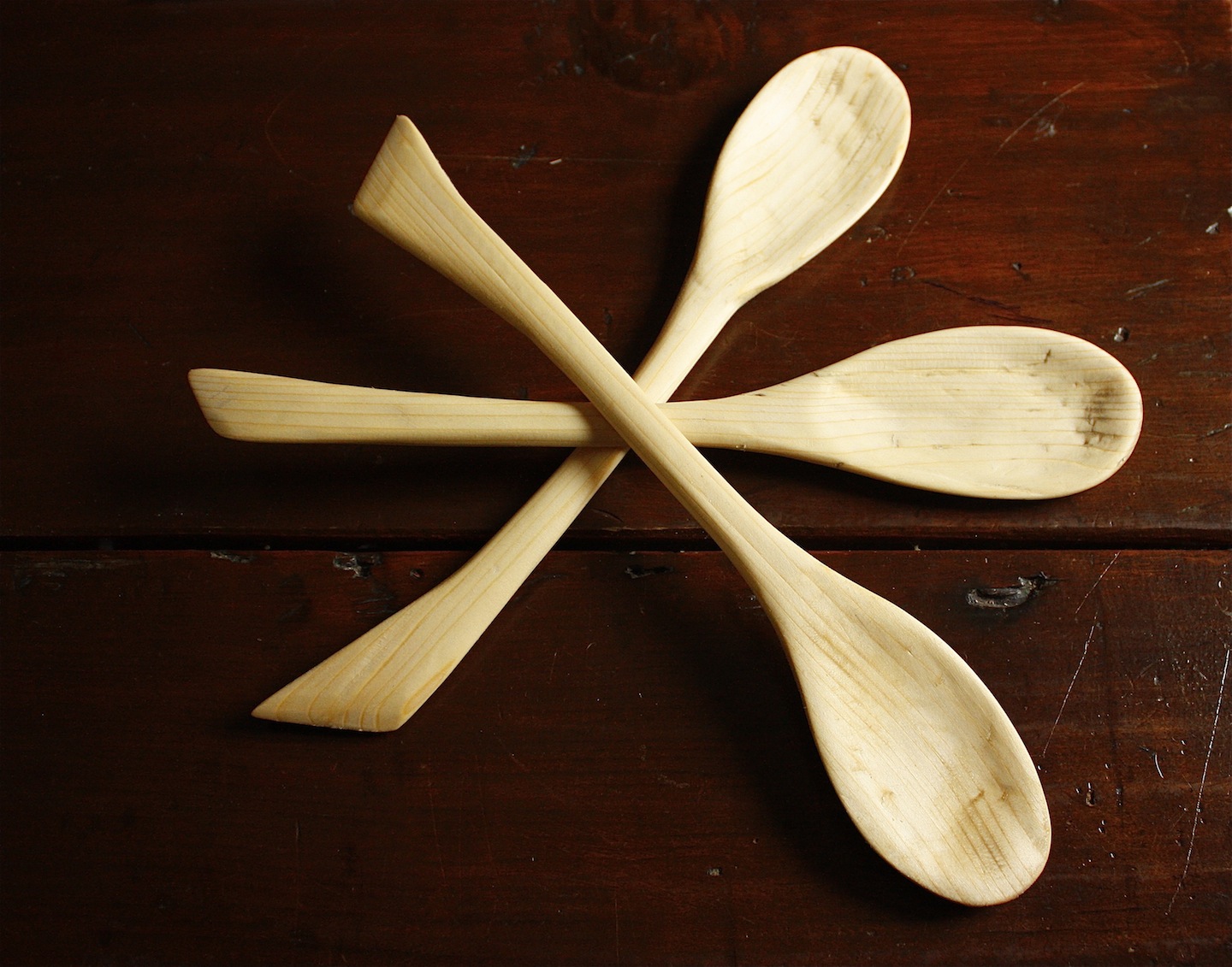 Used the shaving horse the other day to make these spoons... another bucket list item. Some are made of spruce, 3062 & 3061 are made from fruitwood from used pallets. I have been recycling pallets for wood as a source for small wooden projects. Great supply of exotic woods for free. Pics of the trays show the wood - I make the wrought iron handles in my forge shop.