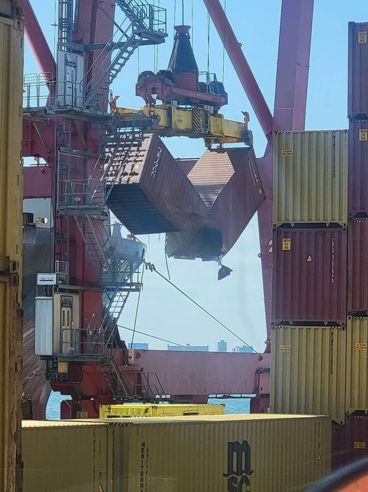 All the shipping containers at our physicality have side pockets on them for moving via forklift. They move these unloaded internally.