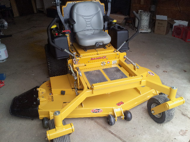 So.. I had started touching up a few spots in the paint on the deck and frame with the dealer paint and it was really thin, didn't like using it at all. I had read that people claim that the tractor store brand "cat yellow" is a real close match, so i bought that and started applying it, much better & thicker consistency.
