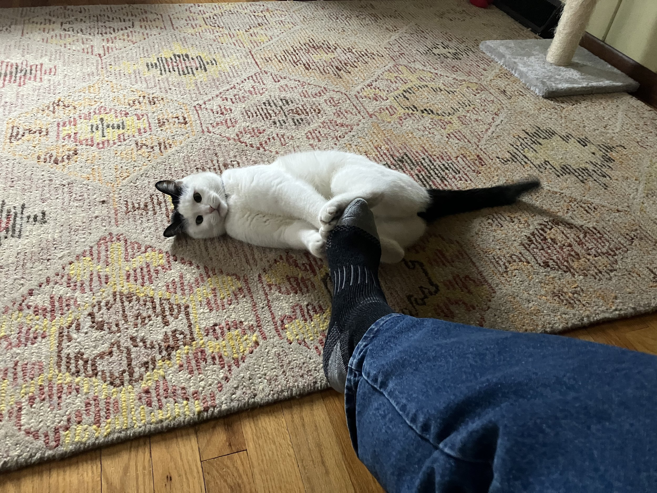 That little guy rubbing my feet is a hoot. Every night he comes in the bed and makes biscuits then curls up and sleeps right in my arms. Around 3am I get up to use the bathroom and he jumps off the bed and leads me down the hall. I turn into the bathroom and he continues on to the kitchen and has a snack. When I come out, he leads me back to the bedroom and curls up back in my arms. It's a ritual.