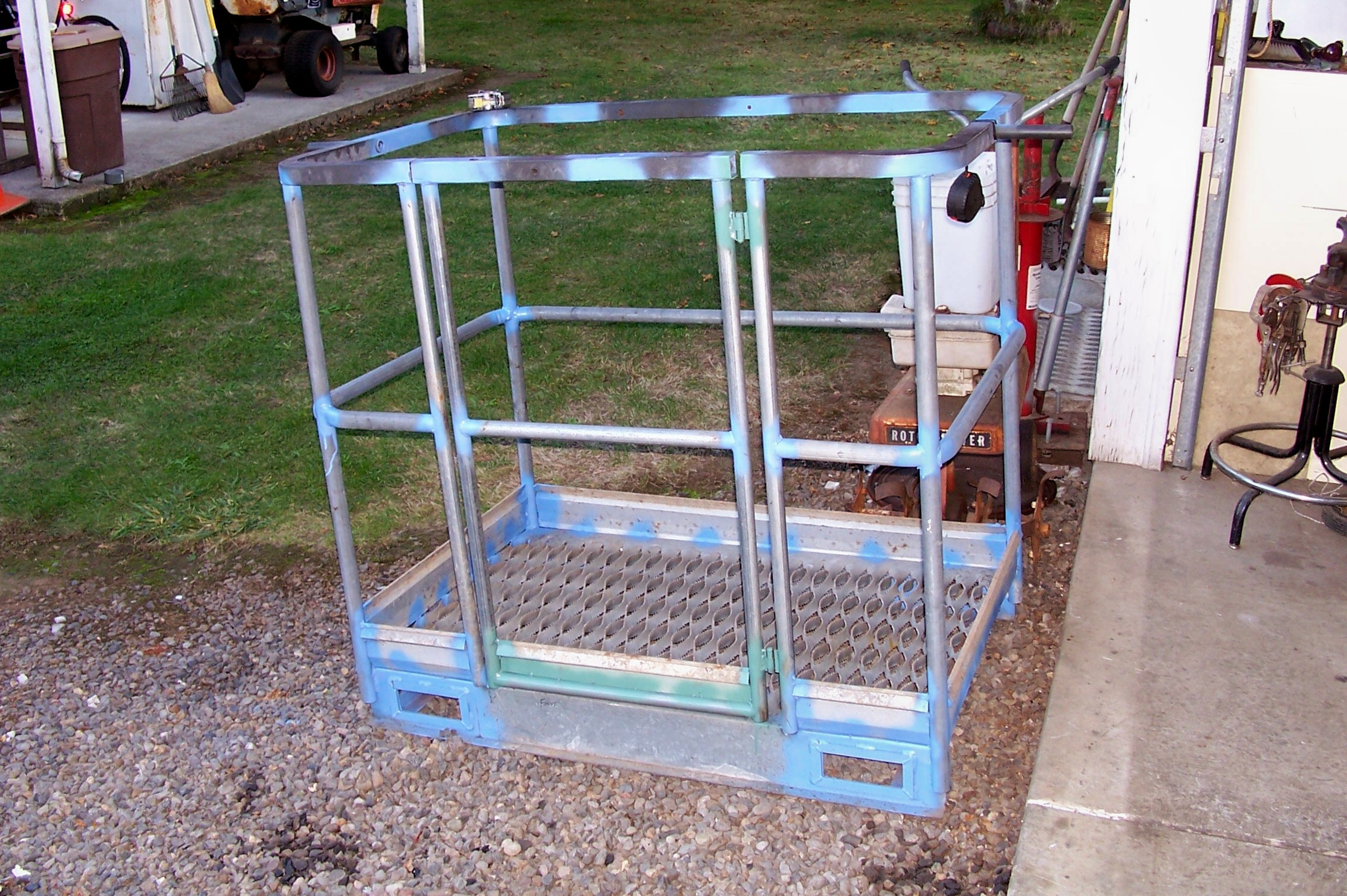 Here's the cage I built before I bought a Genie articulating manlift.