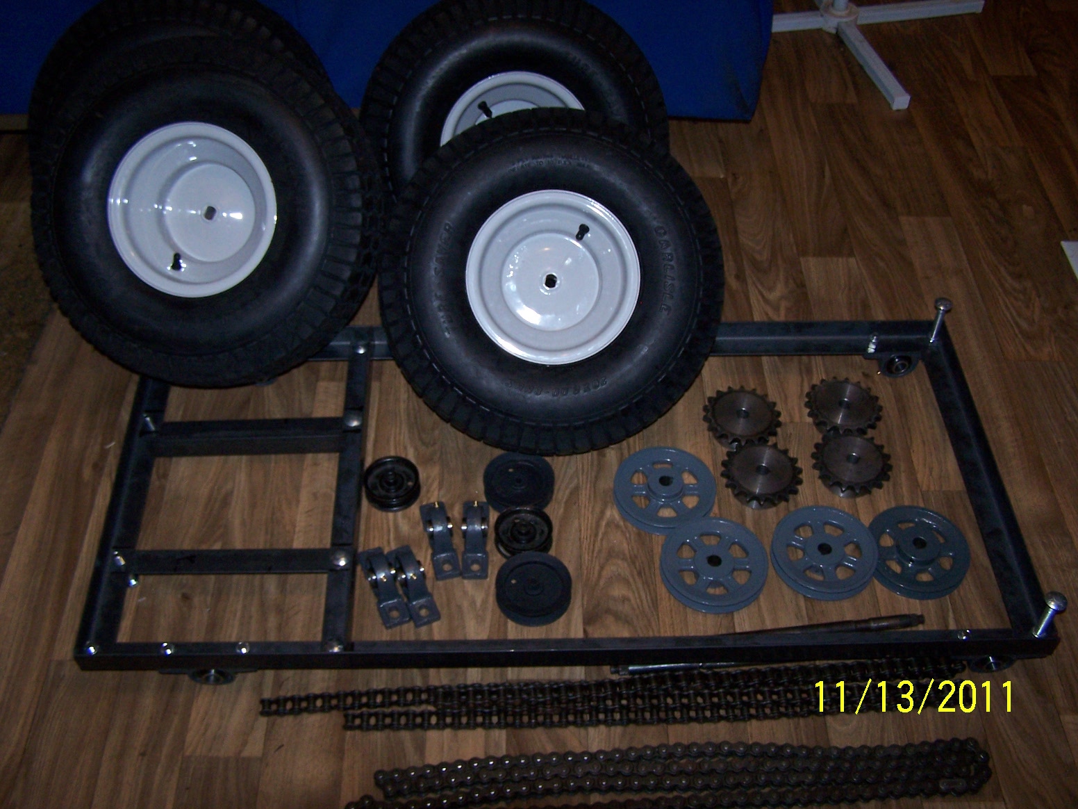 I finally decided to build a skid steer type design, I've spend months hanging out in a scaled tank site and got the idea of how to build a belt driven transmission that will run a small skid steer vehicle, not for real work but - to just be building it. lol I bought a mig gaseless welder, & I ordered lotts of parts, a 6.5 engine. pulleys. sprockets, chain & Tires, pillow block bearings, axles..and angle iron ectt..and drill bits, lol so here i go. I'm taking pics and will upload them .