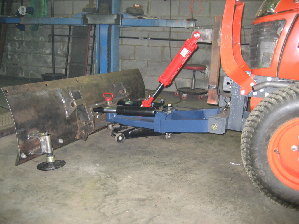 It seems to work great and the hyds. are very smooth and not jerky so I think it will serve my needs well. I ended up with about 800.00 to 1000.00 in it not counting the plasma cutter I bought. I also ended up doing what I set out to do and thats make it a quick connect setup where I can still use the mmm and fel without removeing the hitch. And yes it was a Kubota blade and I did cut it down to 5' 2" the reason for the 2 inches was to maintain the end bolts on the cutting edge.