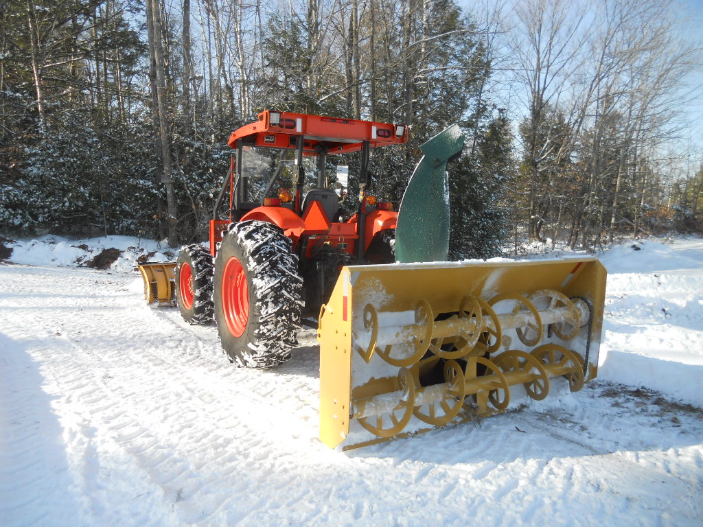 I wonder why you are breaking shearpins and having so many chain issues, typically dual auger machines are intended for and built for severe service. They also tend to use a good bit more power than a single auger thus slowing things down a bit. I think its very possible/likely that some blowers are a good bit more efficient than others. I know when i replaced my kubota with frt blower (about 4.6 hp per ft of blower) with my current set up (about 5.8 hp per ft) that instead of being able to go 25 or 30% faster on a given snowfall i was able to go at least double. Too, the control given by the commercial chutes is great especially in constricted areas or near buildings. I have a couple of dangerous sections along my drive and previously i would build berms with a blade to help keep vehicles on in case of sliding, now i use the blower to build higher and thicker berm than i could with a blade.