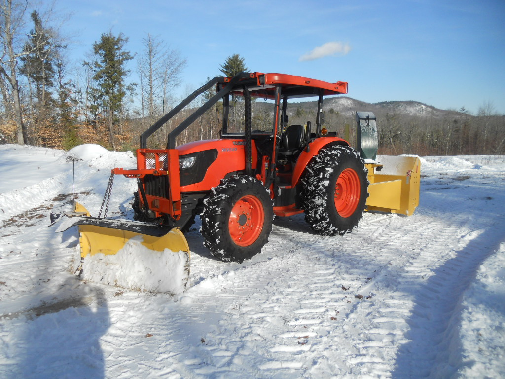 My current method is with a frame mounted Fisher "EZ-Vee" 9'6" blade. When the banks get too big to push back or I just run out of room (woods), I'll get out the blower (8' dual auger Loftness) and the customer get's charged for that. That makes ALL my blowing what I would estimate to be "severe", meaning very deep and usually hard & icy snow. Shear bolts and chain repair is common & frequent.