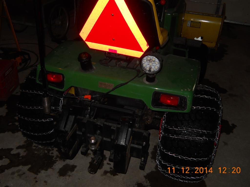 I have a 7'6" pusher and a 7'6" power angle plow. In my area of Upstate loaded tires, chains and rear ballast are a must have for deeper snowfalls. For lighter snows I don't put the rear ballast on. My pusher has an adjustable height steel cutting edge. I have it set up a half inch so it doesn't dig into the gravel drive. Same with my plow. The shoes are set so the cutting edge is also up 1/2". I also made and installed an adjustable back drag blade on the pusher shown in the third pic.