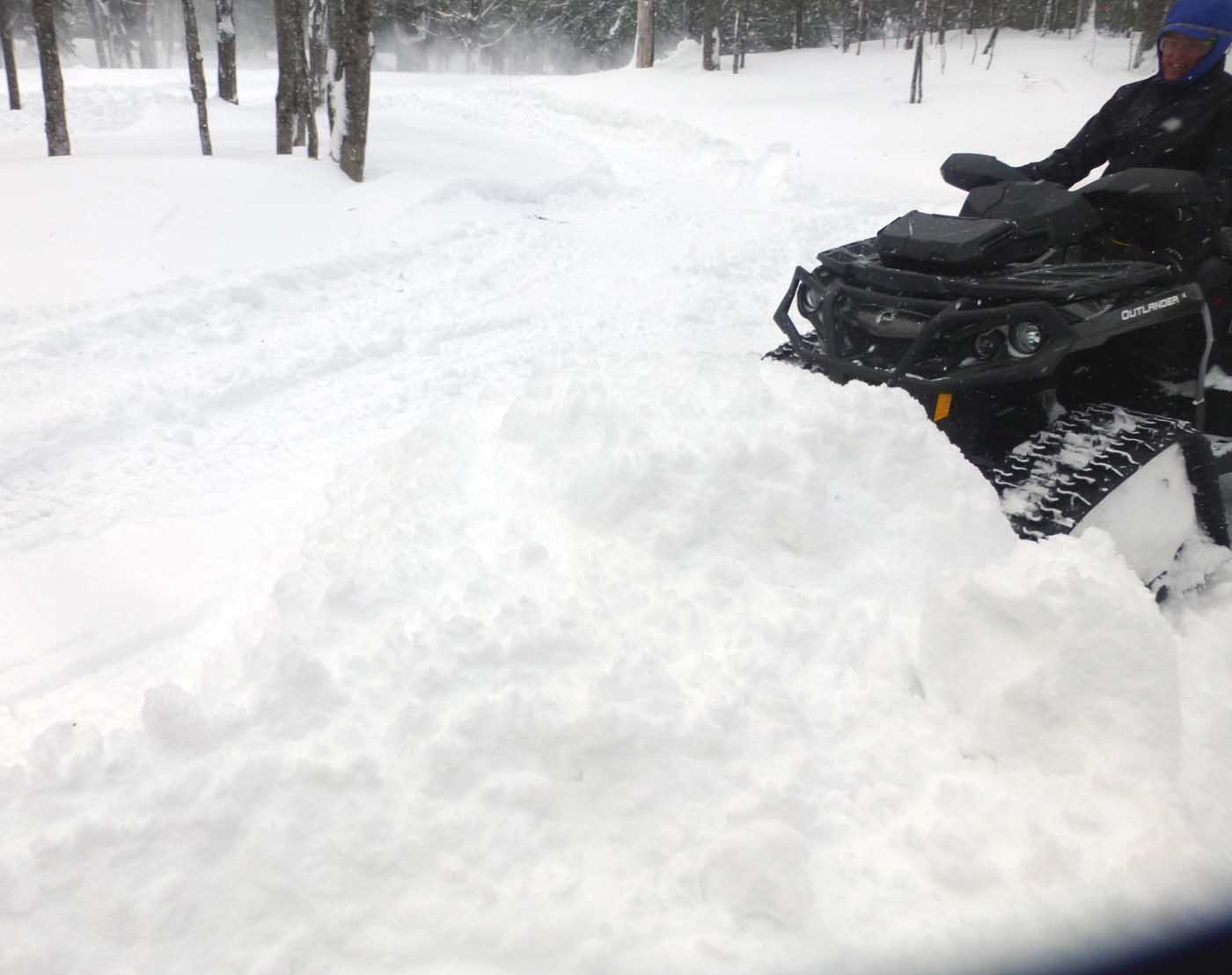 I've had surprisingly good luck adding a homemade weight to the rear receiver an my 700 Kodiak plowing I also have v- bar tire chains on a old set of tres and rims ready to go when the going gets rough. I figured out also when plowing with an atv plow at an angle and push it as far back as you can initially.